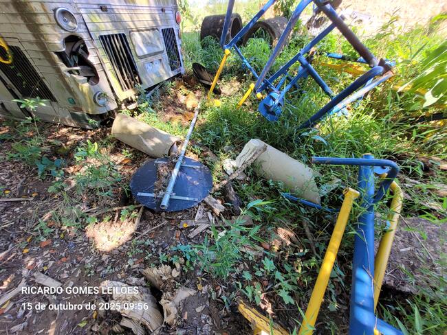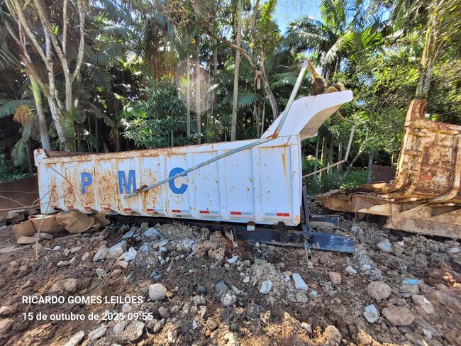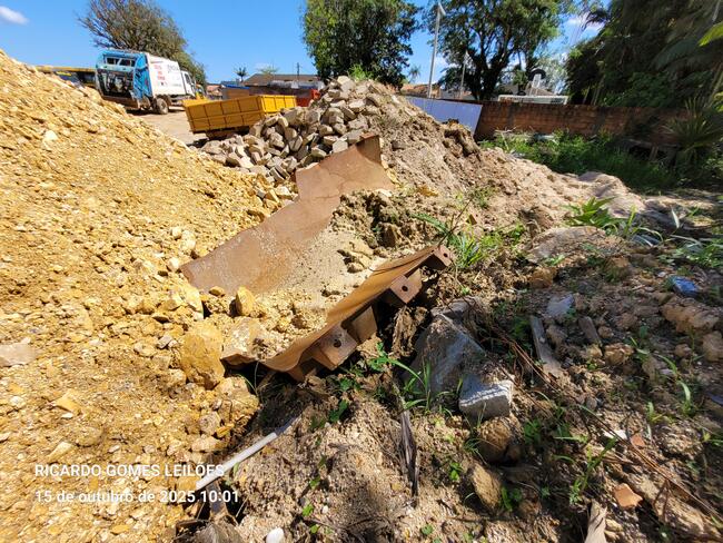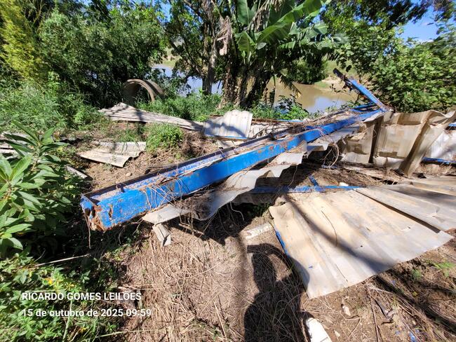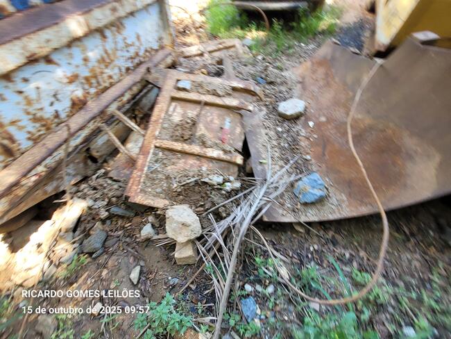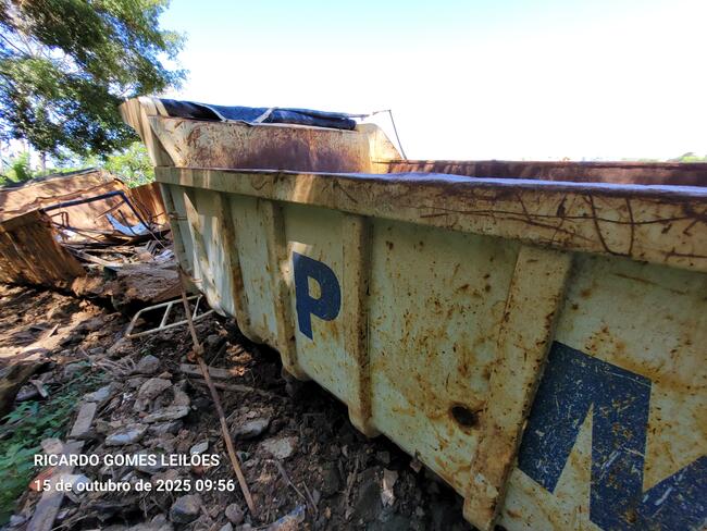 caçambas em ruim estado, telhas de zinco e dentre outros materiais ferrosos diversos